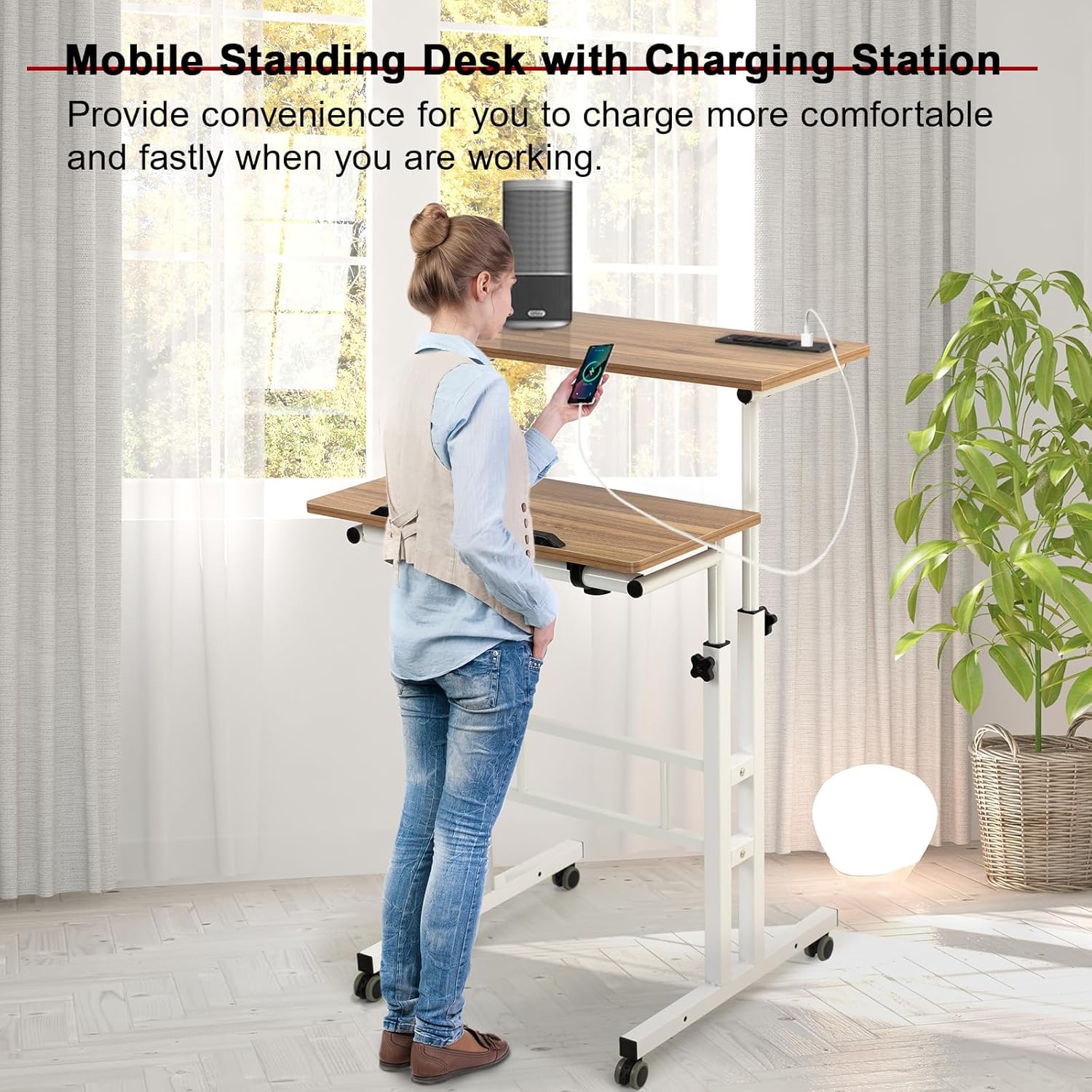 Hadulcet Mobile Standing Desk: Portable Workstation with Power