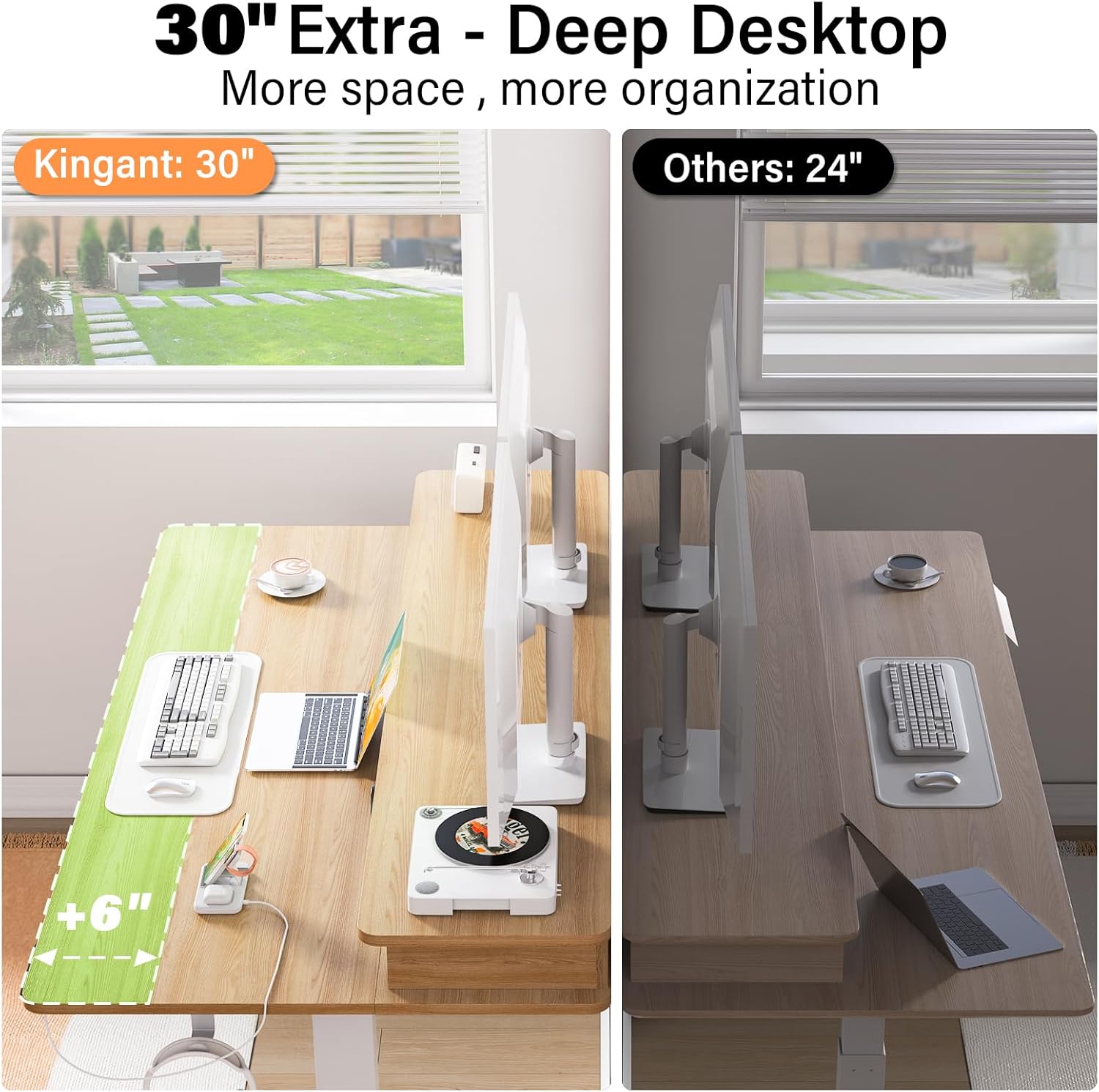 48x30 inch surface provides ample room for dual monitors, keyboard, and documents side by side