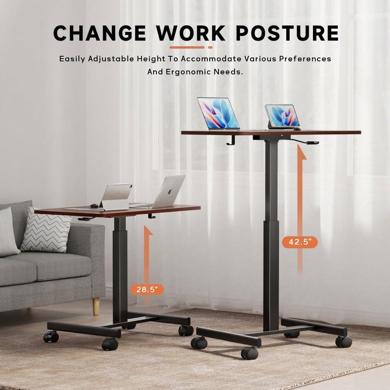 The NICECOZY Mobile Standing Desk is a lightweight, portable workspace solution built for small rooms and on-the-go professionals. At just 15.7 lbs with lockable casters, it rolls wherever you need it , but the compact 15.8×25.5-inch desktop and pneumatic lift mean it's best suited for single-laptop setups rather than full workstation builds.