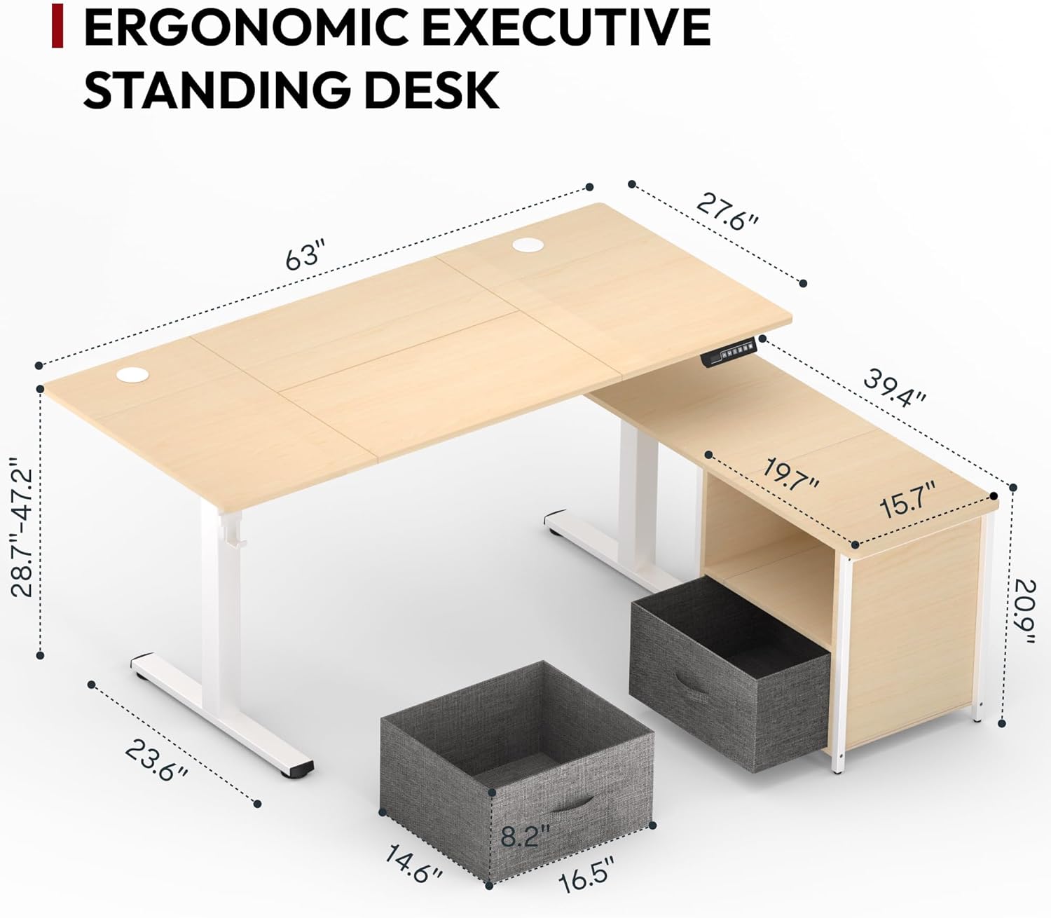 SANODESK 63" L-Shaped Standing Desk: Storage Cabinet & Height Adjustable Design